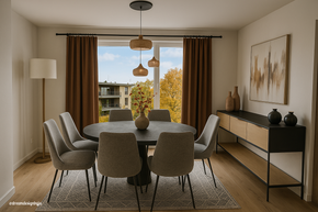 Cette chambre allie élégance et douceur avec une palette de tons neutres rehaussé de touches chaleureuse. Le mobilier épuré et les matières naturelles créent une ambiance à la fois moderne et apaisante.